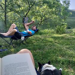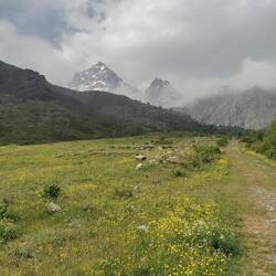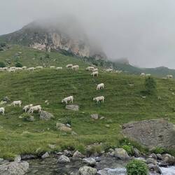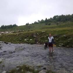 Giornata elle nuvole, finalmente al riparo dal sole. Altro sentiero non trovato e guado. Tante mucche bianche. Relax