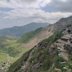 12km 859d+, un po' di imprevisti e un guado ci portano a scoprire questo bellissimo angolo pianeggiante sopra ad una cascata e un lago. Vi si trova il primo rifugio CAI italiano in disuso e accantoLue lisää