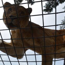 Ich habe mir die Tour durch das Löwengehege gegönnt. Die männlichen Löwen sehen aus wie die weiblichen nur in größer und massiver. Die Löwen springen auch auf das Auto, der eine ist eineLeggi altro