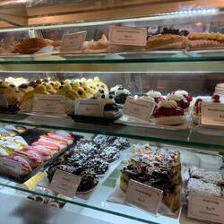 Frühstück im Murchie‘s, Einrichtung ist sehr viktorianisch!! Die Köstlichkeiten in der Auslage machen Appetit.