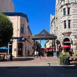 Bummel durch Victoria, Markplatz und der Bonsaibaum und der Drachen kündigen schon Chinatown an