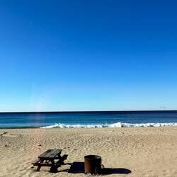Nach einem langen Ritt von über 350 km haben wir Bahia Asuncion an der Pazifischen Küste erreicht. Wir sind die einzigen Gäste auf dem Campground. Durch den Hurrikan im Oktober 2023 ist hier nochLue lisää