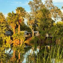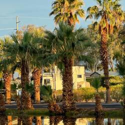 Wunderschöner Campground mit Pool und Golfplatz. Die Kakteen deuten schon auf trockene und wüstenhafte LandschaftenLue lisää