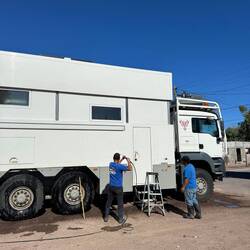 Zwischen den Fischerbooten (hungrigen Möven und Pelikanen) und einem Luxus Hotel standen wir drei Tage. Günter und Brigitte kamen auch auf dem Weg nach Norden für zwei Tage vorbei. Günter hat denもっと詳しく