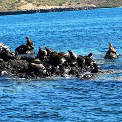 Ausflug mit dem Katamaran mit Gisela und Hermann, vorbei an Seelöwen und Pelikanen und einen Walもっと詳しく