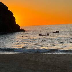 Den Abend haben wir im Hotel Cristobal bei einem Cocktail ausklingen lassen und die letzten Fischer beobachtet im Sonnenuntergang 🌅