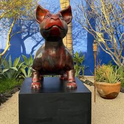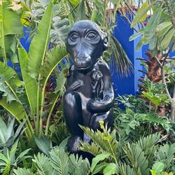 Tiere, vor allem Hunde und Affen (sie legten ihre langen Arme um ihren Körper und wärmten sie) liebte sie sehr. Die Plastiken im Garten sind Mexican ARTE Popular, die schwarz/weiss Fotos von GiseleLeer más