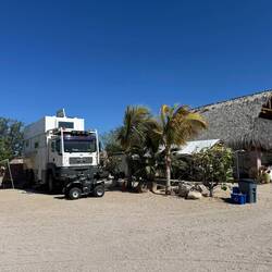 Nach anstrengenden 40 km durch enge, steile und kurvenreiche Strassen „Dirt Road“ an der Bay Küste entlang, sind wir nach 3 Stunden in Los Barriles auf dem Campo Baja Sunrise angekommen. HierLeer más