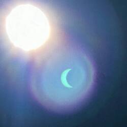 Alle waren ganz aufgeregt, um 11.03 Uhr war es endlich soweit, der Mond schob sich vor die Sonne 🌔🌗🌑🌖 es wurde trotz Sonnenschein ab 10.30 kühl und es herrschte eine besondereLeer más