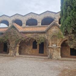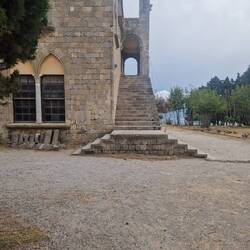 Ein schönes altes Klostergebäude in Rhodos auf einem Berg, es gibt viele schöne Aussichtspunkte.