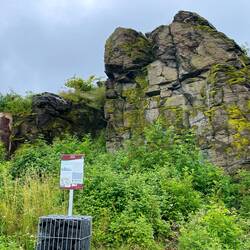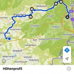 In Breitscheid, dem 1. Etappenziel des WWS liegt der Hund begraben. Im Nahkauf habe ich zwar einen Kaffee für 1 Euro aus dem Automaten bekommen, aber es gibt keine Ecke/Stehtisch, wo man ihn in Ruhe trinken kann. So stand ich draußen unter dem Sonnenschirm bei den Topfpflanzen. Auch hier hatte die Kirche wieder zu. Also auch dort keine Chance auf eine Pause geschützt vor dem Regen. Den Rest vom Mandelkuchen habe ich erst zum Abendbrot gegessen.