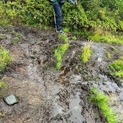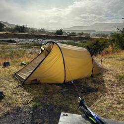 In der Nacht (Camp Torres Central) hat es geregnet, beim nächtlichen Toilettengang ist leider Regen vom Zelteingang in meinen rechten Wanderstiefel gelaufen. Aber da wir heute eh nur noch zumLes mer