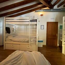 Noch zum Refugio Pont Roma: die Etagenbetten gehören leider wieder zu einfacheren Sorte, d.h. bewegt sich einer oben, spürt derjenige, der unten liegt ein Wackeln und hört das Knartschen deutlich. Aber, da ich heute nix mehr zu leisten habe, war mir das gestern egal, und so habe ich mehrere Folgen des Podcast „Wanderwach und Kaffee“ gehört: das NST-Interview mit Robin, mit Soulboy und ganz aktuell auch die beiden Kurzberichte mit dem Stockmann vom Trail. Ein prima Zeitvertreib und Neues konnte ich auch noch erfahren.