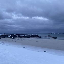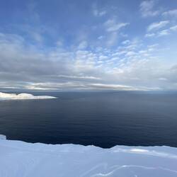 Das Eis kam von einem auf den anderen Meter und hat uns 500km auch nicht mehr los gelassen. Die Sonne steht schon deutlich tief.