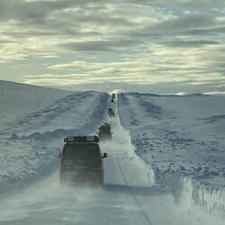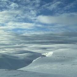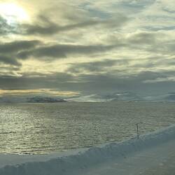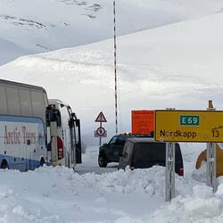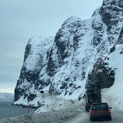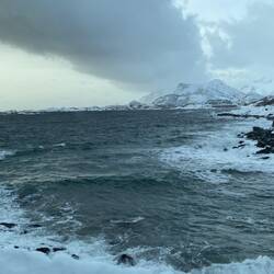 Nachdem wir die letzten 100 km gestern bis Honningsvag nur im Dunklen gefahren waren und von der Landschaft herum nichts gesehen hatten, konnten wir diese heute bestaunen. Ein Traum in weiß..,.