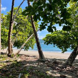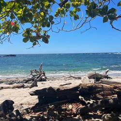 Es gibt hier einen unglaublich schönen Strand mit türkisfarbenem Wasser, kristallklar, und einem weißen Sand, der aus reinweißen Muscheln besteht. Man kann hier sogar gefahrlos baden, auf weichem Sand und das Wort Paradies passt hier sehr gut. Es soll einer der schönsten Strände Mittelamerikas sein- ich kann es mir vorstellen.