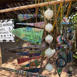 Fußläufig erreicht man ein staubiges hippie-angehauchtes Dorf mit vielen angestaubten Alt-Hippie-Amerikanern mit Blumen hinterm Ohr, schöne Strände und einige Retreazentren in der Nähe, die Magic-Mushroom und Ayavasca-Zeremonien anbieten. Heute hatte ich noch sehr netten Kontakt mit einer Mitgästin aus Quebec, die hier vor fast 20 Jahren in die Drogenszene abgerutscht war und jetzt hier ist, um das Stück Land zu begutachten, das sie mit ein paar kanadischen Freunden gekauft hat.
