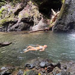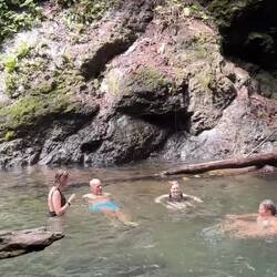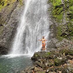 Der Marsch über Stock und Stein führte uns weiter zu einem wunderschönen Wasserfall und all das Krakxeln, auf allen Vieren Kriechen und in den Schlamm fallen, wurde mit einem herrlichen Bad unter dem Wasserfall belohnt.