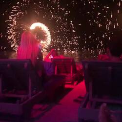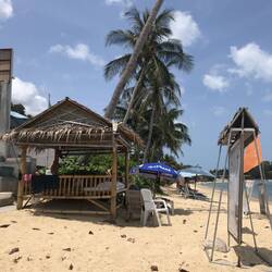 De Flughafe vo Koh Samui isch chli und herzig, was eus sofort s Inselfeeling gäh hett. Euses erste Hotel isch am Chaweng beach gsi. De Chawengbeach isch bekannt für lange,wisse Sandstrand und Party bis früeh am Morge. Euses Hotel hett weder en Pool no en Strandabschnitt gha, aber wänmer öbis imene Resti trinkt, chamer deht au guet de ganz Tag uf de Liegestüehl liege. Es bizeli Party hett natürli au nöd dörf fehle. D Ark Bar seg bekannt für d Füürshow, das hemmer schnell gmerkt :).