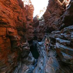 The walk into Weano Gorge was another steep descent. The final section of the walk winds through a narrow section of gorge with a stream running beneath your feet. There is a final climb down a largeもっと詳しく
