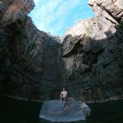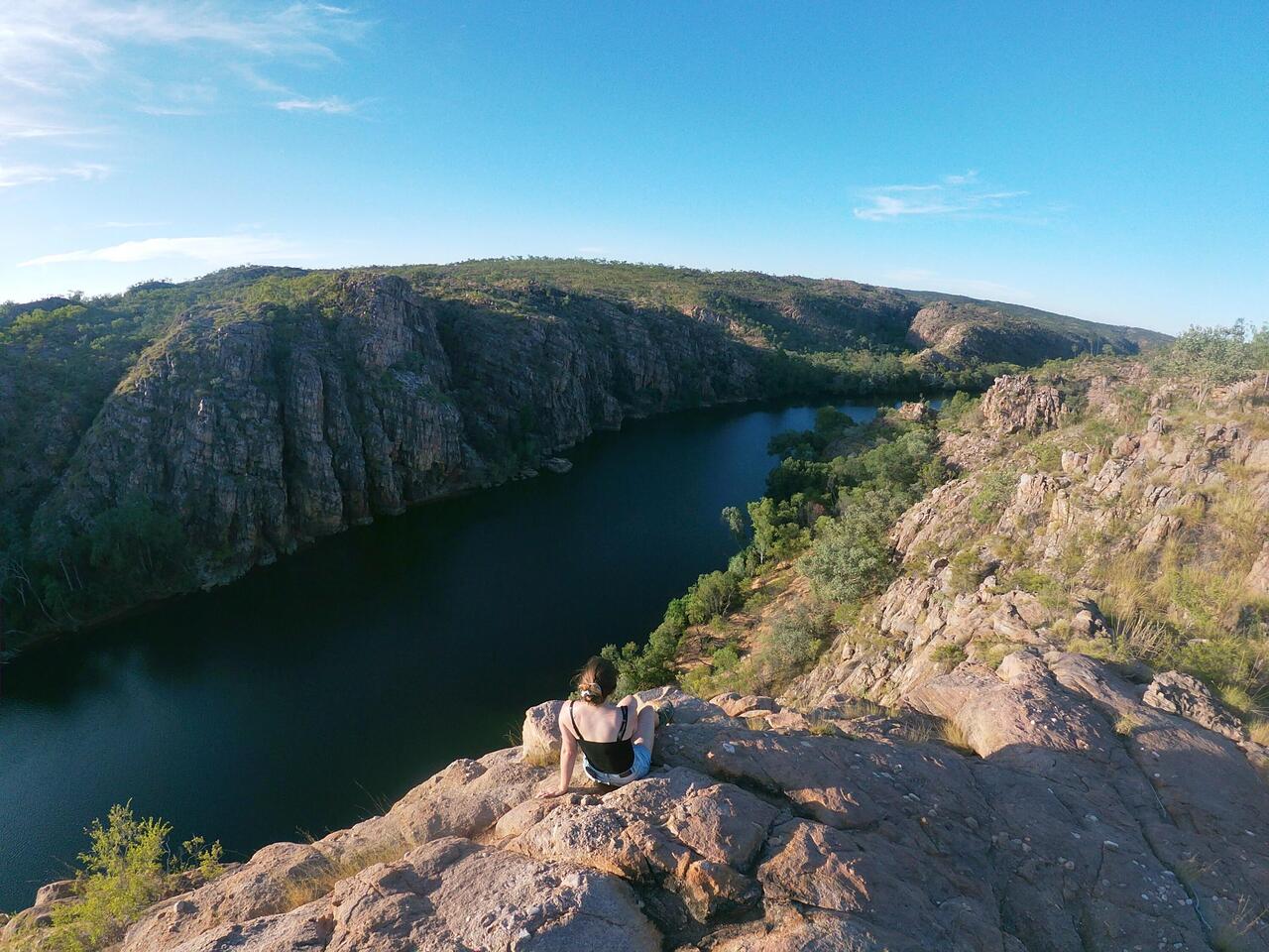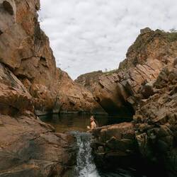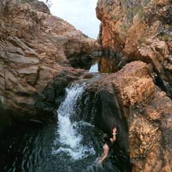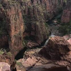 After Jim Jim Falls a rough 9km 4WD track brings you to Twin Falls. Twin Falls Gorge is currently shut for maintenance, so we did the very steep hike up to and around the escarpment - definitely worthLäs mer