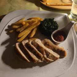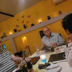 They took me to a place that serves beef. The steak was very good. We share all the plates. Everything was very tasty.