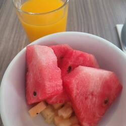 This chief does a better omelet than the three one the other day. The fruit over here is unbelievably good. This morning, watermelon and mixed fruit salad containing mango and pineapple