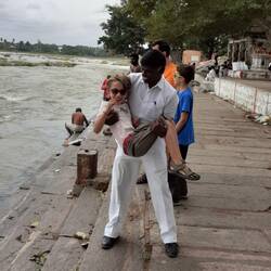 Pernottiamo al Mansion 1907 un ostello molto frequentato situato in una casa storica caratterizzata da elementi architettonici indiani e britannici . Molto ben organizzato ha anche belle camere private con pavimenti in piastrelle colorate deliziosi. Per cena andiamo la prima sera all'Hotel RRR specializzato in pollo o montone biryano servito su foglie do banano e la seconda sera ci concediamo una cena con un 'atmosfera un po piu' fiabesca al ristorante Tiger Trail un ristorante che serve specialità indiane in un giardino che di sera viene illuminato da lanterne che creano una bella atmosfera. Shekar ci accompagna lungo il fiume e ci spiega i rituali che tutti gli indiani induisti praticano, completamente rasati, regolarmente in caso di morte di un parente, in caso di commemorazione di una morte o in caso di un assolvimento dei propri peccati. Pregano seguiti da un sacerdote immergendosi più volte nel fiume e compiendo rituali con il cibo i fiori, qualche rupia, la cerimonia dura qualche ora.Read more