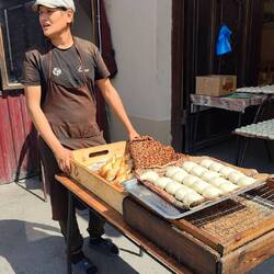 Per pranzo street food al mercato, decisamente uno dei migliori, assaggiamo anche senza indugiare un dolcissimo succo di ciliegia fatto in casa ormai ci sentiamo uzbechi