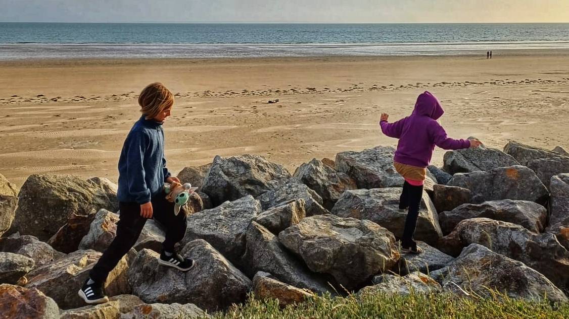 Ausgepackt war schnell. Also ging es zur Nachmittagsflut mit den Badesachen an den Strand. Laut Wetterbericht sind es um die 20° draußen und 16° Celsius im Wasser. So kalt fühlte es sich aber garLeggi altro