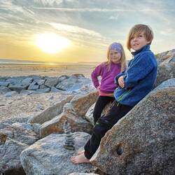 Nachdem wir gestern Abend schwächelten , hielten wir heute die Tradition hoch und verbrachten den Abend am Strand. Das Abendessen war sehr französisch: Käse, Baguette, Butter - fertsch. Die KinderLeggi altro
