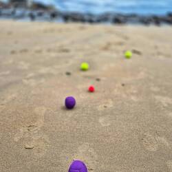 Auf der gegenüberliegenden Seite von Portbail erstrecken sich die Dünen von Lindbergh Plage. Schon oft haben wir sie gesehen, heute haben wir sie bewandert. Und Caches gefunden, 24 Stück. Es istLeggi altro