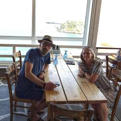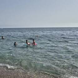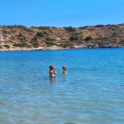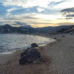 Strand haben wir durch. Ist allerdings sehr kiesig. Das wussten wir ja vorher. Die Bucht ist echt schön. Und das Mittagsangebot an der Strandbar ist auch sehr üppig.