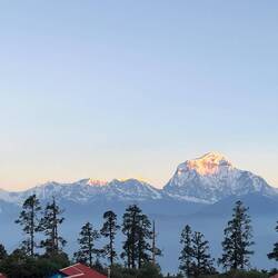 Today was an epic hike downhill approx 19 km, 1000m to the village of Tikot. We woke at 5:30am to watch the sunrise on the Himilayas. This morning we could see the Dhaulagiri range that goes into Tibet, the Annapurna range that extends to Khatmandu with approx 29 peaks. It was stunning.
