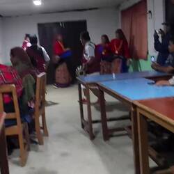 Right now there are 10 expeditions getting ready to climb Dhaulagiri and 25 expeditions ready to climb Manaslu. We enjoyed omelet and a sweet bread that was to die for. We started our day through forest and then onto enormous Rhododendron forests & trees. They all bloom in the Spring. We crossed little creeks here and there and had to watch for leeches. They are awful and numerous and can go through certain boots & socks for sure. They did not get through ours thankfully. We ended up on a road that the government of Nepal made that goes nowhere and covered the existing hiking trail. Such a waste of money when so many people are needy and the shape of the used roads are so bad. When we arrived in Tikot we stopped at the school to present the Headmaster & 3 teachers with jersies, a basketball & volleyball. They are down to 55 students. Numbers have been on the decline. We then walked into the village and were welcomed by members of the Mother Group with Fulcomala lays. Ful is round and mala is marigold. We had our usual choice of hot water or black tea and cookies. Then we were taken to our Homestays. This village has so many stairs and Anthony & I were at the bottom. Our homestay hosts are so nice & our room very comfortable. We had a regular toilet and a hot shower in a fairly big room which is rare and is in a separate outbuilding. Two of our porters came and got us and walked us up to the community hall for dinner and a musical traditional dance presentation. Dinner was our first family style where we got to serve ourselves by taking the amount we wanted. Most times the portions have been to large so we sometimes share a plate and then the porters get more.We had spaghetti with vegetables, momo dumplings and sauce. After dinner we were treated to their Traditional Ancestral Dance and the Headmaster & teachers we met earlier were part of it. 3 are drummers and drumm a 22 beat rhythm and 3 men are dressed as women & dance. This would typically last 3 hours at Festivals but they condensed it to 30 minutes for us. The Mother Group sat in a circle off to the side and sing as accompaniment. It was truly amazing to witness. They asked any of us to join them afterward to try the dance. We all got up and danced for 10 minutes or more. Following the dancing we had a chance to talk with the Mother Group. Jen and I sat with them and asked what types of things they do & any projects they are working on in the community. They make paths in & around the village which are lined with marigolds. They help with any needs in the community and school, they are the welcome committe for the village, they cook and plan festivals and mentor the young girls. In this case, the youngest woman in the Group volunteered to be the leader. It changes regularly. We presented them with a donation from friends. The donation will go a long way to help this community.Read more