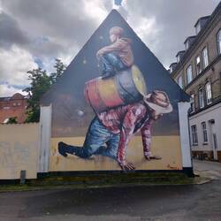 Nach dem Zusammenpacken zogen wir am Morgen gegen halb 8 Uhr los, liefen zum Bahnhof und nahmen den Zug nach Vejle ('Weile' gesprochen). In Vejle hatten wir ein BnB Zimmer gebucht, weil wir am nächsten Morgen sehr früh mit dem Bus starten wollten. Wir hatten riesen Glück. Wir durften mit unserer Ankunft 9:30 Uhr in Vejle bereits ins Zimmer (eigentlich erst ab 13 uhr). Das war ein wahrer Segen. Wir waren unendlich müde und erschöpft von der letzten Nacht. Duschen, Pullern und ab ins Bett. So taten wir es.
