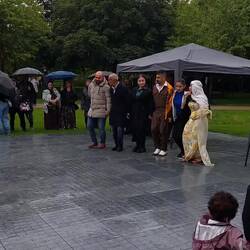 Wir gingen durch den Regen, den wunderschönen botanischen Garten und den Herkulesbrunnen in Hesterberg.