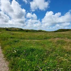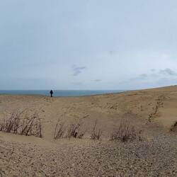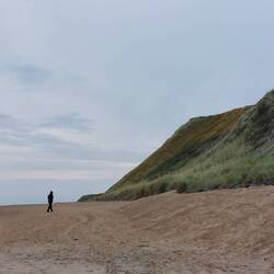 Liebe Menschis, mit keinem Bild und keinem Video kann man einfangen, was Augen dort in Echt sehen können. Es schien wie eine Oase in der Ferne. Weil sich dort auf der einen Seite ein Wald auftat. Schleierhaft und neblig im Hintergrund von blassem Sand und auf einer anderen Seite blüten Dünensträucher und Wiesen. Hier verteilten sich die vielen Besucher so gut, dass man sich trotz der Menschen fast allein fühlte. Etwas Melancholie schwung bei diesem Wetter mit sowie sanfte Rohheit. Ein schöner Ort. Wie er wohl ist, wenn dazu noch die Sonne scheint?