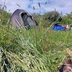 Heute ein Meerspaziergang zum nächsten Zeltplatz. Eigentlich war unser Shelterziel viel weiter weg, aber Susis Blasen wollten nicht mehr und bei Fine war auch alles doof, also wurde es eine Station eher. Wir wohnen heut im hohen Gras. ☀️
