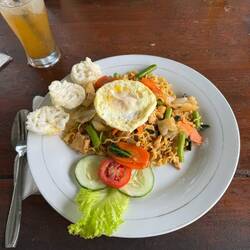 Dennoch gab es mein geliebtes Mi-Goreng in meinem Lieblingslokal in dem Ort gegenüber, wo wir ungefähr 10 Minuten hinfahren. Aber vorher ging es noch unten in die kleine Stadt in Omas Dorf, zum tanken (die Tankstelle hatte aber leider zu) aber es ging noch in den Alfamart ein paar Getränke besorgen☺️. Denn hier gibt es unfassbar gutes Ionen Wasser, und Vitamin C Drinks. (Warum gibt es das in Deutschland nicht?)