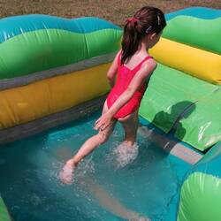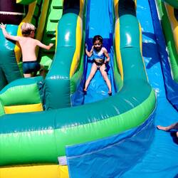 Hier darf ein Besuch natürlich auch nicht fehlen: Das Hüpfburgenland in Ückeritz. Während wir ein schattiges Plätzchen ansteuern, vergnügt sich Clara mit den anderen Kindern auf den diversenBaca lagi