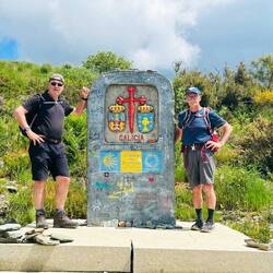 A 25.6 km walk today after a 7:30 am departure. The first 10 km involved a 10 km ascent to the high point of the Camino at Cruz de Ferro where we placed small stones Cathy had taken here from Yellowknife at the foot of the highly recognizable cross. It was a poignant moment for the many Christians on the Camino. The 800m descent, on sometimes treacherous terrain brought us to the village of Molinaseca 15 kms beyond the cross.