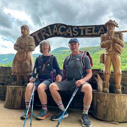After yesterday’s 8 km , arduous climb, today’s 21km felt much easier, with much of it downhill; however, the steep downhills require cautious, slower steps to avoid injury. The weather was cool this morning, but our 7:30 departure had us arriving at today’s destination before 1:00 pm. Cathy and I were by ourselves for the first two hours, then we met Luis from Puerto Rico who wasn’t much more than four feet tall, but he was a fast walker and a bit of a social dynamo. We thoroughly enjoyed his company as he shared his family stories, cooking recipes, his exploits travelling the world as an accountant for Coca-Cola, and how his wife rules their house while being a pharmacist with her PhD. He’s the ultimate extrovert - funny, friendly, with loads of energy. Cathy calls him “the little leprechaun “ because he has such a positive attitude, so ready to help anyone. He stayed with us until Triscastela, then after we registered at our hotel, we joined him again for a beer.