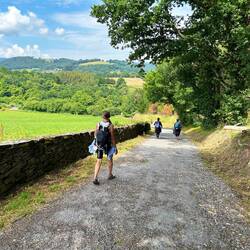Shortly after we arrived in Las Herrerias this afternoon it poured raining with thunder; we’ve been fortunate with weather so far. Our walk this morning as we climbed from Villafranca was incredibly steep, over 500 additional meters in elevation, then a 400 m descent before climbing again. At one point we did take an unplanned, alternate route to a cafe in a small village, but we were treated to a charming auberge run by a lovely couple who made us feel like family while being entertained with a litter of kittens.
