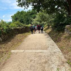 We were told that if you are going to Villa del Bierzo today - 31 kms away - you best leave early ( we left at 8:15 after breakfast) and it was a long walk, but we experienced beautiful scenery. We passed the ruins of the Templar castle in Ponferrada , a lovely medieval city, where there were lots of cafes along the way. Some of the terrain we encountered, with its many vineyards reflected what I would attribute to the best of what one would see in Tuscany, rolling hills, in the middle of valleys, rivers running through, with such beautiful greenery. We did not have an encouraging weather forecast this morning, anticipating rain by midday, but no rain, a slight breeze with generally sunny skies.