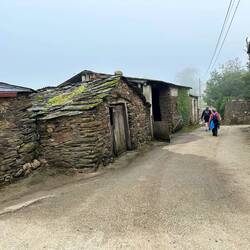 The operative word for this morning’s walk was “fog,” a heavy fog that lingered for three hours. Our 7::00 am breakfast was two blocks away from the “pension “ we stayed at last night, so we left from the cafe at 7:40 with Jim from New Zealand. Today’s 25 km trek had us going through a variety of terrain, climbing 400 m for the first 15 km, then descending 100 m to Palas del Rei. Once again, we were presented with two options: the longer, more scenic route or the shorter one along the highway. We chose the former.