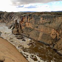 Vor etwa 500 Millionen Jahren erhoben sich die Landmassen des südlichen Afrikas und damit begann der von Südosten herankommende Oranje mit der Arbeit an einer bis zu 200 Meter tiefen und fast 20Read more