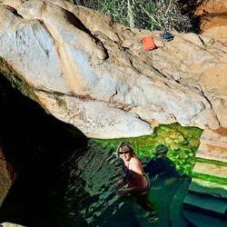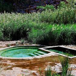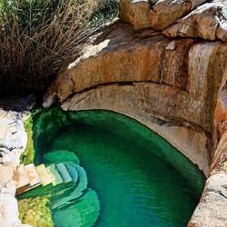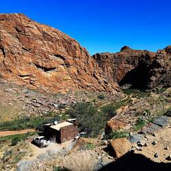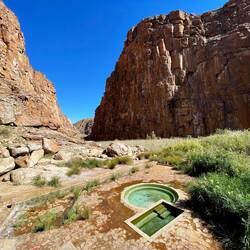 Die Riemvasmaak Hot Springs liegen in einer von 80 m hohen Granitfelsen umgebenen tiefen Schlucht, nördlich der Augrabies Falls.