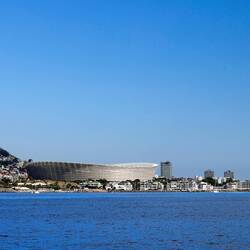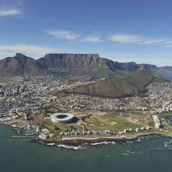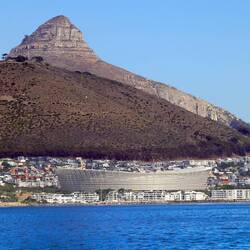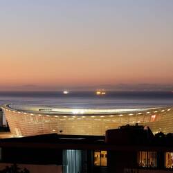 Woher auch immer man auf Kapstadt hinunter blickt, ist das für die Fussball Weltmeisterschaft 2010 erbaute Green Point Stadion der visuelle Anziehungspunkt.