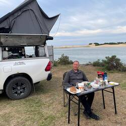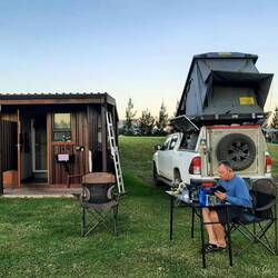 Nach einigen Übernachtungen in Appartements bzw. Guesthauses verbringen wir die kommende Nacht auf dem direkt am "Sunday River" und gegenüber den Dünen liegenden Campingplatz.
